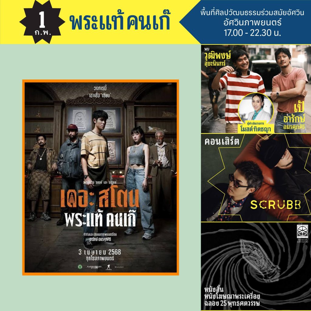 📽 ฉายภาพยนตร์เรื่อง “เรือนแพ” ที่สร้างโดยอัศวินภาพยนตร์ ร่วมทุนกับชอว์บราเดอร์ส ฮ่องกง และภาพยนตร์เรื่อง “พระแท้ คนเก๊” การกำกับหนังครั้งแรกของ เป้ อารักษ์